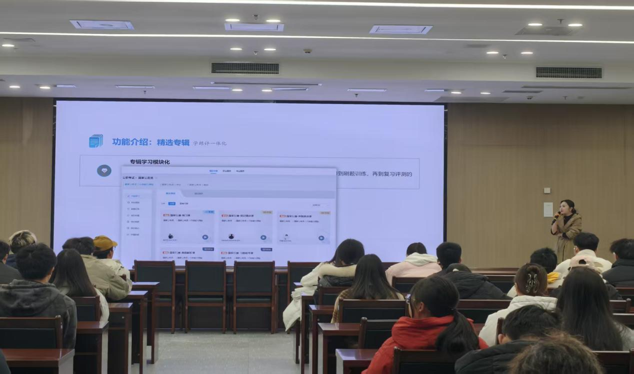 为助力同学们将规划落到实处,讲座专门介绍了图书馆提供的优质学习资源与服务。维普考试服务平台作为馆藏数字资源的重要组成部分,集“学、练、评、测”于一体,涵盖公务员、金融、计算机、医药卫生等十大职业类别与十二大学科专业,提供海量题库、精品课程及AI智能解析、错题分析、个性化组卷等实用功能。该平台与图书馆“资讯中心”发布的考试动态、备考资料、考试日历等服务协同配合,并通过“个人中心”实现多端同步学习,为同学们的职业资格备考与专业技能提升提供一站式资源支持。